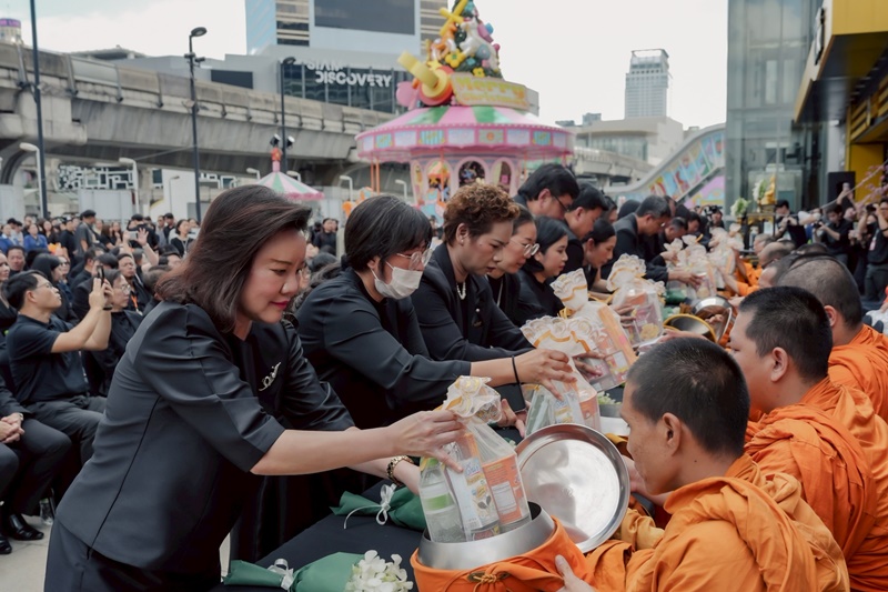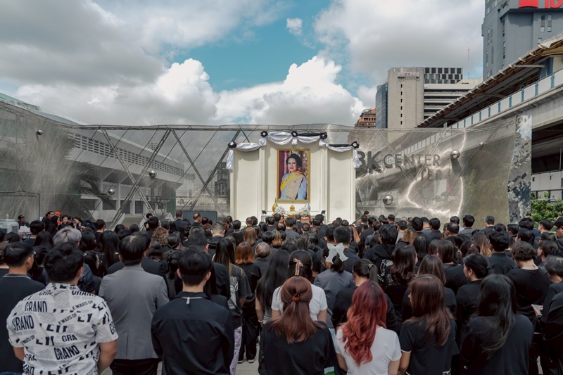 Backบริษัท เอ็ม บี เค จำกัด (มหาชน) นำโดย คุณวิจักษณ์ ประดิษฐวณิช ประธานเจ้าหน้าที่บริหารและกรรมการผู้อำนวยการ พร้อมด้วย ผู้บริหาร พนักงาน บริษัท เอ็ม บี เค จำกัด (มหาชน) และกลุ่มธุรกิจในเครือ รวมถึง บริษัท ทุนธนชาต จำกัด (มหาชน) บริษัท สยามพิวรรธน์ จำกัด สำนักงานจัดการทรัพย์สิน จุฬาลงกรณ์มหาวิทยาลัย สำนักงานเขตปทุมวัน สถานีตำรวจนครบาลปทุมวัน กรมพลศึกษา ผู้ประกอบการร้านค้า และประชาชน ร่วมพิธีบำเพ็ญกุศลสัตตมวาร ๗ วัน ถวายเป็นพระราชกุศลแด่สมเด็จพระนางเจ้าสิริกิติ์ พระบรมราชินีนาถ พระบรมราชชนนีพันปีหลวง พระผู้เสด็จสู่สวรรคาลัย ด้วยการตักบาตรข้าวสาร อาหารแห้ง แด่พระสงฆ์ จำนวน ๒๐ รูป พร้อมถวายความอาลัยด้วยการยืนสงบนิ่งเป็นเวลา ๙๓ วินาที โดยพร้อมเพรียงกัน ด้วยความจงรักภักดีและน้อมสำนึกในพระมหากรุณาธิคุณอันล้นพ้นหาที่สุดมิได้ ณ ลานสกายวอล์ค ศูนย์การค้าเอ็ม บี เค เซ็นเตอร์ เมื่อวันศุกร์ที่ ๓๑ ตุลาคม ๒๕๖๘ ที่ผ่านมา