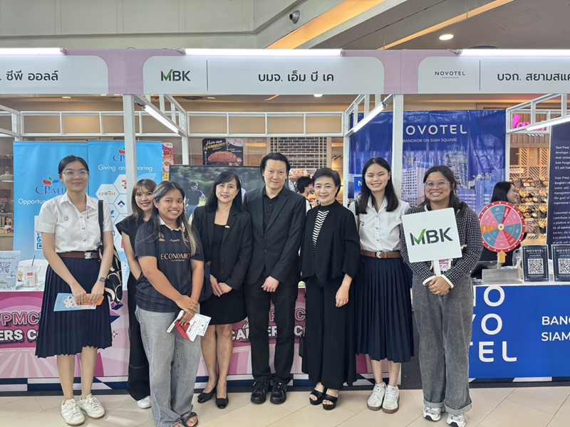Backบริษัท เอ็ม บี เค จำกัด (มหาชน) นำโดย คุณพัชรินทร์ พินทุนันท์ ผู้อำนวยการอาวุโสฝ่ายทรัพยากรบุคคล (ที่ 4 จากซ้าย) พร้อมด้วย คุณศตกมล วรกุล ผู้อำนวยการอาวุโสฝ่ายสื่อสารองค์กร (ที่ 1 จากซ้าย) และคุณพีรพล ประเสริฐศรี ผู้อำนวยการอาวุโสฝ่ายพัฒนาธุรกิจ 1 (ที่ 6 จากซ้าย) ผู้บริหารในเครือเอ็ม บี เค ร่วมงานเปิดตัว PLATFORM PMCU CAREERS CONNECT เพื่อเปิดโลกทำงานให้นิสิตจุฬาฯ ทุกชั้นปี โดยมี ศ.ดร.วิเลิศ ภูริวัชร อธิการบดี จุฬาลงกรณ์มหาวิทยาลัย (ที่ 3 จากซ้าย) เป็นประธานเปิดงาน ณ จามจุรีสแควร์ เมื่อเร็ว ๆ นี้